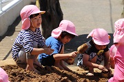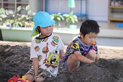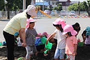 今日も暑い一日です。今日、予定していた5歳児ばら組のサッカー教室は、朝8時30分に園庭の気温が33度になったため、熱中症の危険を避けるため、中止にしました。今日は朝から園庭にミストの機器を設置し、園児たちの体温を下げる工夫をしました。それでも園児たちは、元気に園庭に出て、泥遊びなどに夢中でした。