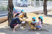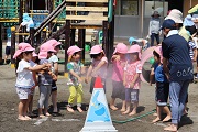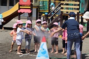 園児たちは、遊びで身体が暑くなるとミストの水で身体を冷やしていました。
