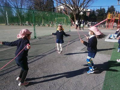 風で土埃が舞い、園庭では少ししか遊べませんでした。