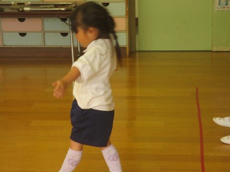 慣れている子は下を見なくても集中してまっすぐにわたります。