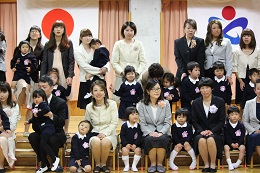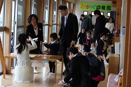 4月11日(火)は朝から冷たい雨が降りました。それでも、園庭にはチューリップのかわいらしい花が新しいお友だちを迎えてくれました。おかべ幼稚園初めての3歳からの入園児と4歳の新入園児、そして3人の5歳児クラスへの新しいお友だちを迎え、73名がそろっての入園式です。お家の方に寄り添われて、30分ほどの式をがんばりました。榛沢小学校の校長先生の「まいにちたのしいようちえん」を大きな声で年長さんに合わせて、読めたお友だちも4歳児にはいました。緊張がとけて、記念写真のころには気持ちよく寝ている子もいました。初めての幼稚園、がんばるぞという気持ちが強く感じられました。きりん組さんも大きな声で元気よく歓迎の言葉や歌を披露してくれました。いよいよ始まります。明日からの始まりが楽しみです。