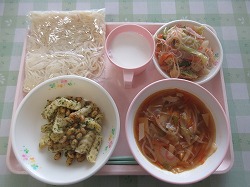 ソイ丼 かきたま汁 バリバリサラダ 牛乳