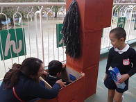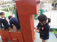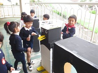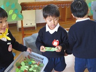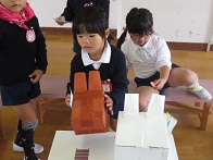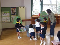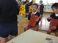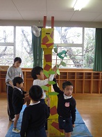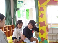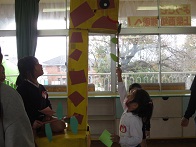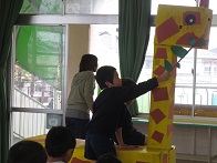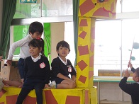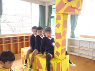 自分たちが作った動物たちと遊んだあとは、きりん組さんたちを招待しました。