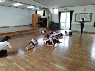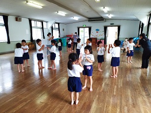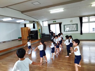 お友達と先生と一緒に、ピアノに合わせて歩いたり走ったり