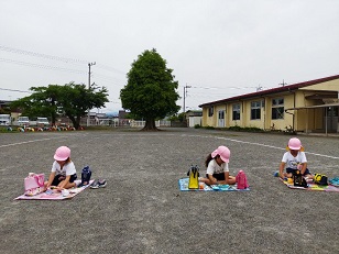 「まん延防止等重点措置」の延長を受け、例年実施しております保育参観の持ち方の変更にご理解いただき感謝いたします。22日に分散型保育参観の計画表を配布しました。第一希望を優先に計画表を作成しましたが、思い通りにならなかった保護者の皆様のご理解に感謝いたします。参加人数を踏まえ三密を考え計画表を作成したことにご理解下さい。参加に際しましては、配布しました健康確認票の提出をお願いいたします。