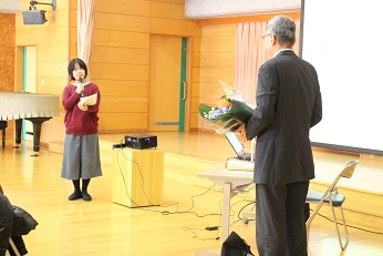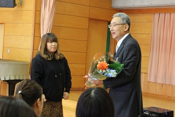 両園のPTA会長さんから、花束の贈呈、謝辞をしていただき、有意義な人権講話を終了しました。子供たちの笑顔につながっていく大切な機会となりました。