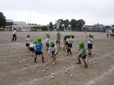うさぎ組も、さくら組もかけっこ大会に向け、玉入れと、リズムの練習をしました。うさぎ組は、楽しそうにリズムを踊っていましたよ。さくら組は、玉入れで、たくさん入れることができ、とても喜んでいました。当日見に来られる方は、9時から始めますので、応援しに来てください。よろしくお願いします。
