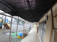 今朝は、4歳児の役員のお母さんと4人の保護者のお父さんが園に来て、ひさしに遮光ネットを取り付けてくれました。お父さんたち4人がきてくれたので30分程で完了しました。これからもっと日差しが強くなりますが、これで大丈夫です。ありがとうございました。作業の様子の写真を撮り忘れました。ごめんなさい。