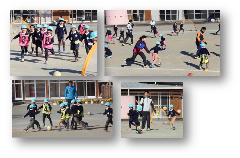 今日は、気温は低いのですがお日様が出ているので、昨日よりはしのぎ易くなりました。年長児は今年度最後のサッカー教室を園庭で行いました。子どもたちはみんな元気にボールを追いかけていました。指導者のみなさんありがとうございました。