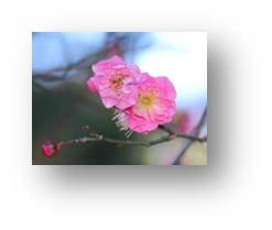 ※写真は今日の豆まきの様子です。花は熊野神社の紅梅です。