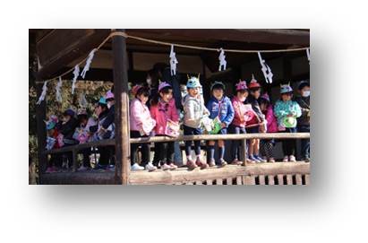 明日は立春です。二十四節気の一つで、今日が節分です。幼稚園では節分に合わせて子どもたち全員で豆まき行事を行いました。近くの熊野神社に行って大きな声で「鬼はそと!福はうち!」と掛け声をかけながら豆をまきました。みんな自分の心の鬼を退治したようです!