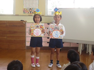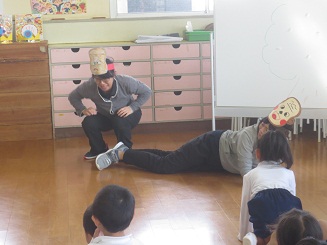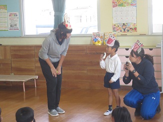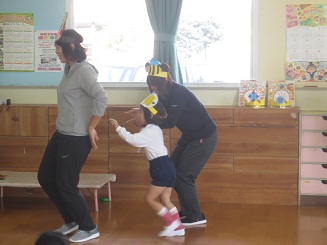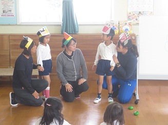 そんな中で10月の誕生日は、きりん組とさくら組2人いました。男性警察官と女性警察官希望です。将来が楽しみです。サルカニ合戦の劇をやりました。そして、お楽しみ昼食はコロッケが出ました。あー美味しかった。