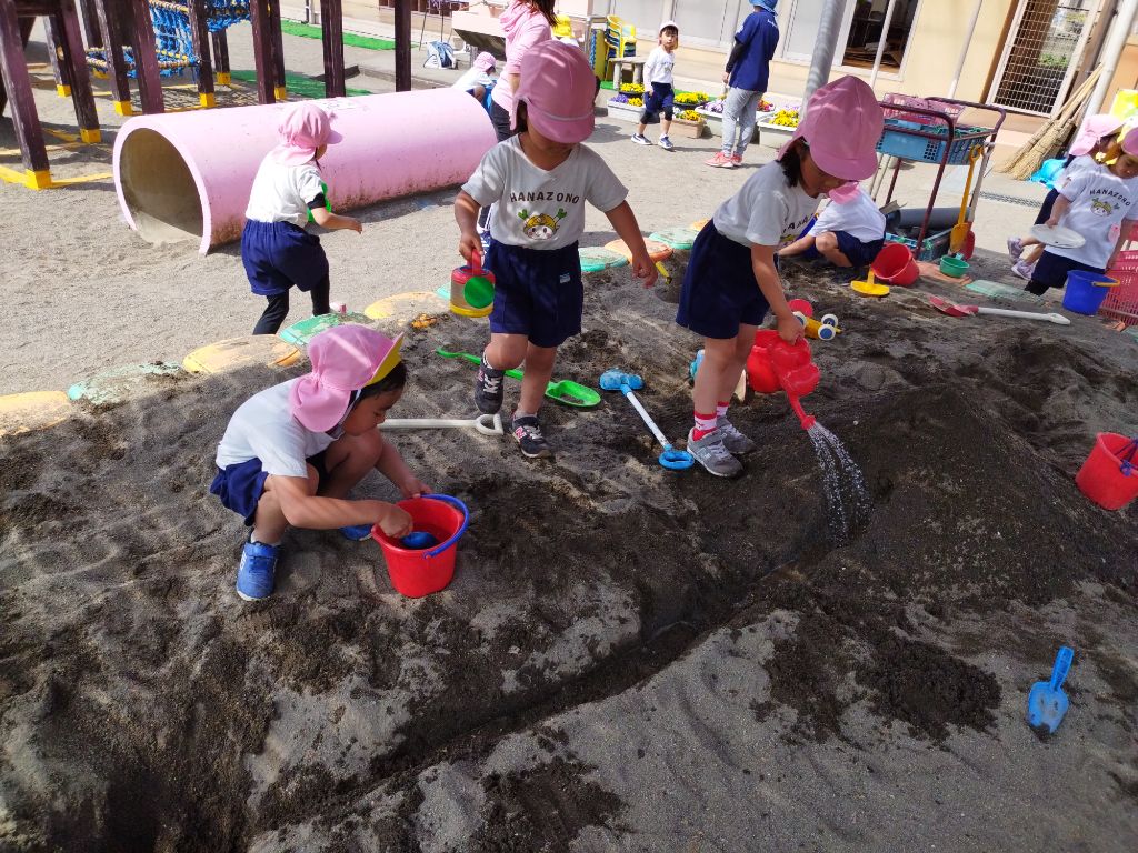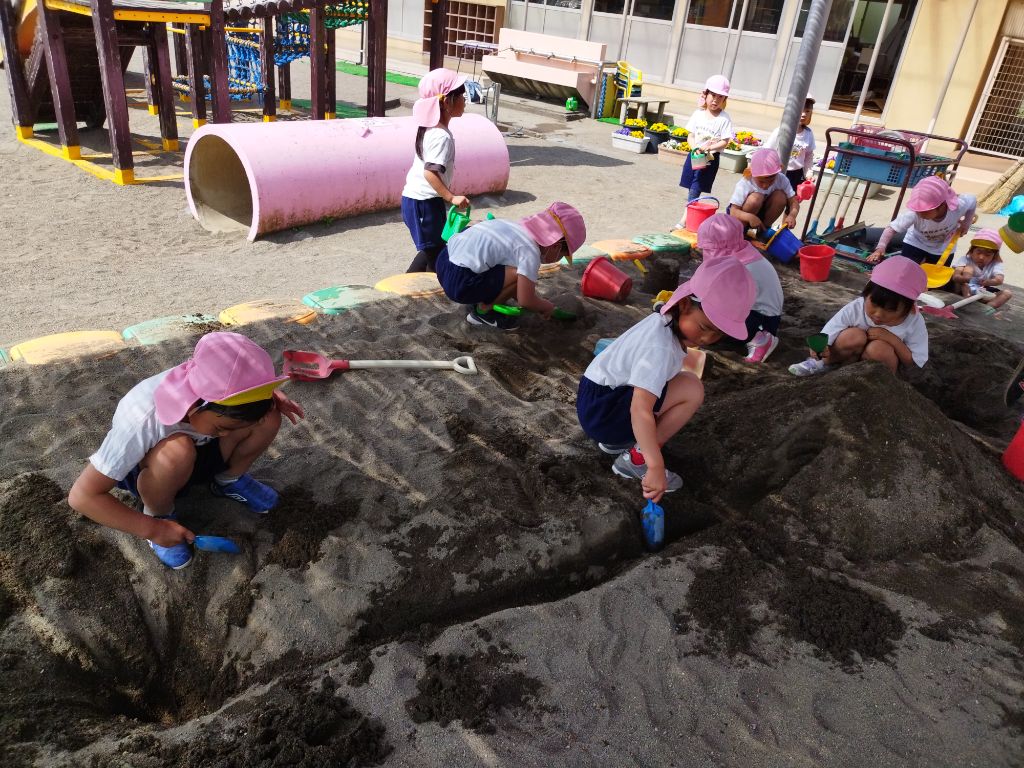 お山に水を流したり、川を作ったり、穴を掘って水を入れたり・・・。