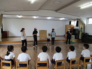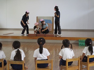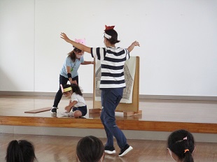 先生と一緒のアドリブの劇遊び、頑張りました。