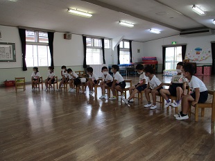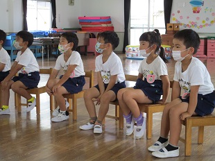 「まん延防止等重点措置」の延長を受け、例年実施しております保育参観の持ち方の変更にご理解いただき感謝いたします。22日に分散型保育参観の計画表を配布しました。第一希望を優先に計画表を作成しましたが、思い通りにならなかった保護者の皆様のご理解に感謝いたします。参加人数を踏まえ三密を考え計画表を作成したことにご理解下さい。参加に際しましては、配布しました健康確認票の提出をお願いいたします。