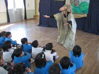 1月のお誕生会のお誕生会にはアクト☆やまとひめの人形劇ボランティアの