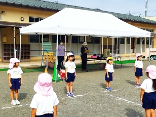 「まん延防止等重点措置」の延長を受け、例年実施しております保育参観の持ち方の変更にご理解いただき感謝いたします。22日に分散型保育参観の計画表を配布しました。第一希望を優先に計画表を作成しましたが、思い通りにならなかった保護者の皆様のご理解に感謝いたします。参加人数を踏まえ三密を考え計画表を作成したことにご理解下さい。参加に際しましては、配布しました健康確認票の提出をお願いいたします。
