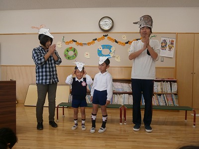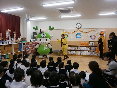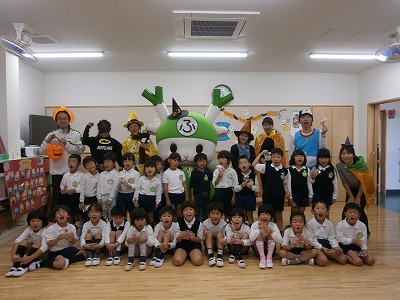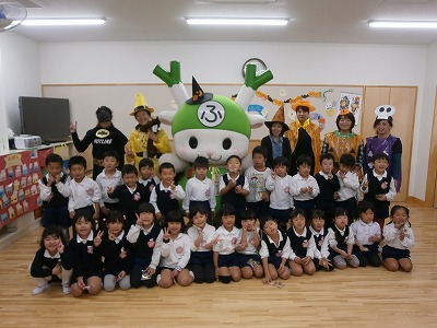 ハロウィンも間近、今日は、ふっかちゃんが、遊びに来てくれました。ハロウィンの仮装をして、みんなにあめを持ってやってきてくれました。握手をしたり、ハグをしたり、最後は写真を撮って、楽しく過ごしました。