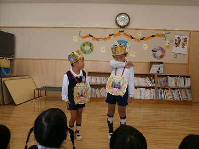 10月生まれの誕生会をしました。2人のお友だちが誕生日を迎えました。大きくなったら、トーイングトラクターの運転手、水泳選手になりたいと、大きな声で発表してくれました。