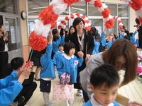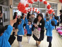 園児が卒園しました。たくさんの来賓の方々や保護者の方に参列いただき園長先生から修了証書をもらうことができました。あいにくの雨でしたが、4歳児にテラスで見送りをされうれしそうでした。ご卒園おめでとうございました。
