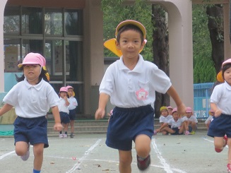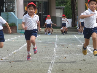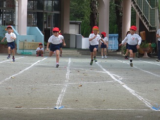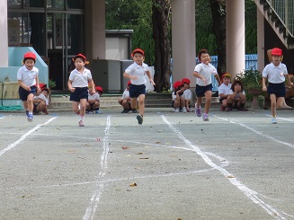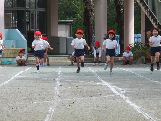 はじめての30メートルを走りました。練習真っ直ぐ走れるかな?