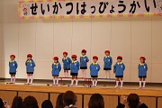 11月30日、土曜日に本年度の生活発表会が、花園小学校の体育館をお借りし行われました。4歳児ぱんだ組は、合唱と合奏、ダンスを発表しました。園児たちは、ミスもありましたが、精いっぱい頑張りました。そして保護者の皆さまから大きな拍手をいただきました。