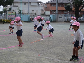 きりん組さんは、本当に初めて、跳び方はもちろん手の動かしかたもまだまだです。