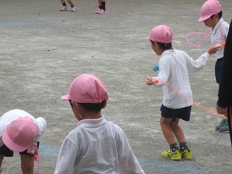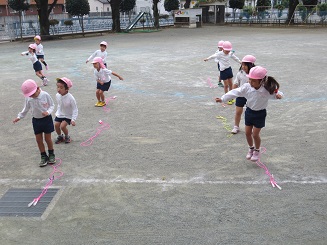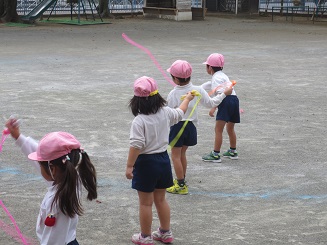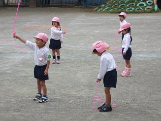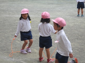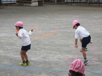 運動会も終わり、今日から外遊びのほかに縄跳びの練習が始まりました。