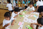 園児たちは、来週行う七夕祭りの準備、かざりを作りました。