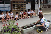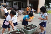 園児たちは、暑さに負けず、今日も元気に活動しています。運動会に向けて駆け足の試走、プランターにブロッコリーの苗を植え、金曜日の祖父母会の準備など次から次とよく頑張っています。この忙しい経験が園児たちの心身の成長に繋がっていきます。がんばりましょう。