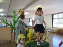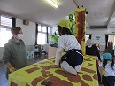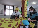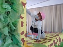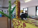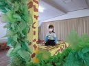 リズム室の真ん中に大きな木の葉っぱを食べる
