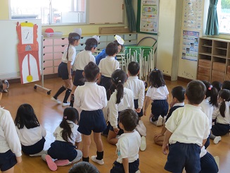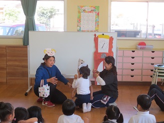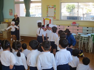そして恒例の劇は、とってもワクワクドッキドキ、園児たちは席をたってしまうほどです。