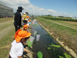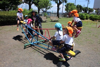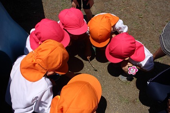 6月1日(金)は昨日までの曇り空がうそのように晴れあがりました。絶好の遠足日和です。今年度2度目の欠席者ゼロです。4歳児と5歳児は、幼稚園周辺の散策です。川探検を楽しみました。川エビやどじょうまでいました。不思議な川の世界をのぞきました。そして、園にもどって3歳児さんの手をひいて、中央公園に行きました。みんな仲良しでクラスにこだわらず、仲良く遊ぶ姿が見られました。帰ってからは、園児たちが一番(?)楽しみにしていたお家の方の手作りお弁当です。みんな、作っていただいた愛に応えようと、空っぽになるまで、食べていました。お家に帰ってから、「きれいに食べたね。」とほめてもらえたことでしょう。