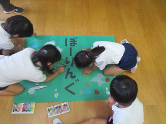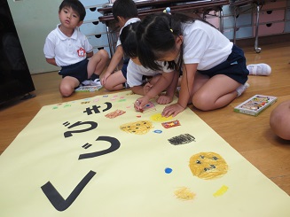今日は、天気も不安定なため、夏祭りの準備の時間に使いました。