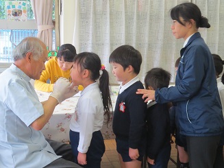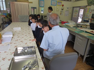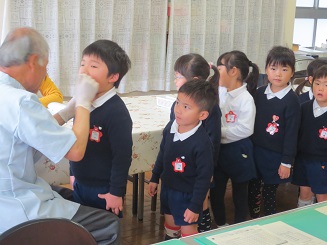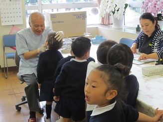 中には、お医者さんに「有り難うございました。」とお礼をしている子もいました。よいことだと思います。お医者さんも一人一人に「どういたしまして」と言ってくださいました。