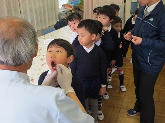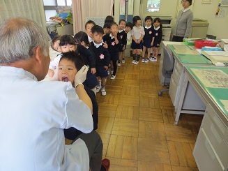保健室では静かに、歯科校医さんにお口の中(歯)がよく見えるようにします。