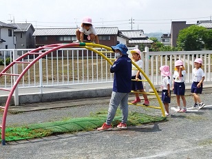 「まん延防止等重点措置」の延長を受け、例年実施しております保育参観の持ち方の変更にご理解いただき感謝いたします。22日に分散型保育参観の計画表を配布しました。第一希望を優先に計画表を作成しましたが、思い通りにならなかった保護者の皆様のご理解に感謝いたします。参加人数を踏まえ三密を考え計画表を作成したことにご理解下さい。参加に際しましては、配布しました健康確認票の提出をお願いいたします。
