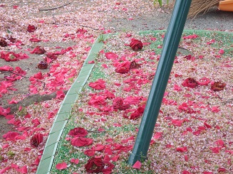しかし、積もった下の桜はまだ薄ピンク生き生きとした花びらでした。掃くたびに桜が舞いあがり綺麗でした。2度目の桜との別れを楽しみました。