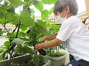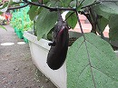 今日はピノキオのような鼻をした可愛いナスが採れました