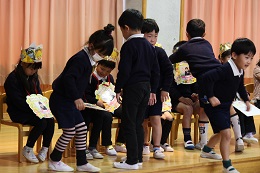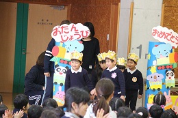 3月14日(火)は、今年度最後の誕生日会でした。給食メニューもお誕生日メニューです。17日(金)に卒園するしか組さんのために、少し早いお誕生日メニュー、お誕生日会にしてくださいました。みんなに祝われての誕生日、しっかりとインタビューに答えていました。さあ、進級、進学の準備ができました。