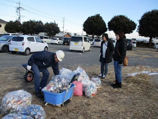 1月26日(金)は、本年度最後のアルミ缶回収でした。冷たい風の中、保健安全部の役員さんたちががんばってくださいました。今日の収益は990円でした。昨年度は今までの収益金の中から、園児たちに絵本を買っていただきました。保護者の方が協力してくださったアルミ缶回収です。園児たちのために有効に使わせていただきたいと考えています。ご協力ありがとうございました。