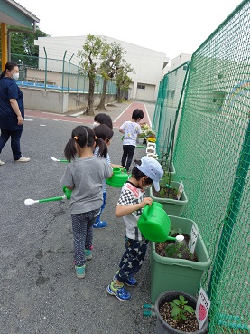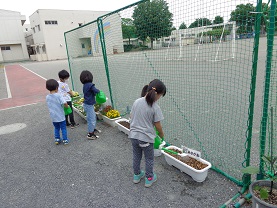 『みんながいない間、先生、野菜の苗を植えたのよ。