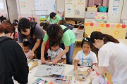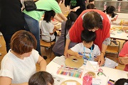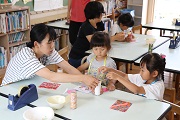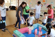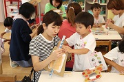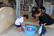 PTAの役員さんたちが考えてくれた出店がいくつかありました。ヨーヨーつり、ボーリング、ギターづくりなど園児が興味をもち、楽しむことができるお店ばかりでした。園側からは、万華鏡づくりと土産つりを実施しました。