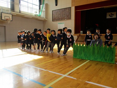 今日はうさぎ組、さくら組合同で、初めの言葉や、終わりの言葉、歌の練習をしたり、祖父母会に行うゲームをしたりしました。発表会練習も残すところ2回!!金曜日には、予行練習をしたいと考えています。