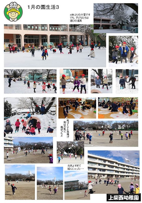 春休みを利用して3学期の園生活を写真で紹介しています。今回はその3回目です。(雪遊び・凧揚げ等)