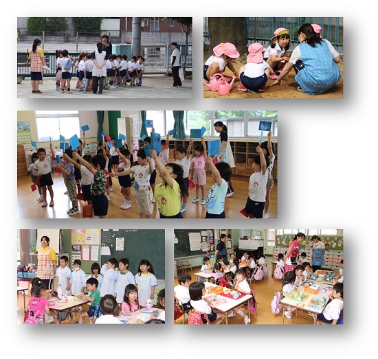 ※写真は今日、年長児が検診に出かけるところと子どもたちの様子です。