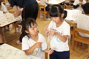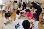 「まん延防止等重点措置」の延長を受け、例年実施しております保育参観の持ち方の変更にご理解いただき感謝いたします。22日に分散型保育参観の計画表を配布しました。第一希望を優先に計画表を作成しましたが、思い通りにならなかった保護者の皆様のご理解に感謝いたします。参加人数を踏まえ三密を考え計画表を作成したことにご理解下さい。参加に際しましては、配布しました健康確認票の提出をお願いいたします。