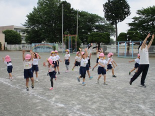 曇り空で、体を動かすのにちょうどいい気温で気持ちよく体操マラソンができました。
