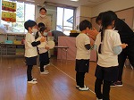 「まん延防止等重点措置」の延長を受け、例年実施しております保育参観の持ち方の変更にご理解いただき感謝いたします。22日に分散型保育参観の計画表を配布しました。第一希望を優先に計画表を作成しましたが、思い通りにならなかった保護者の皆様のご理解に感謝いたします。参加人数を踏まえ三密を考え計画表を作成したことにご理解下さい。参加に際しましては、配布しました健康確認票の提出をお願いいたします。