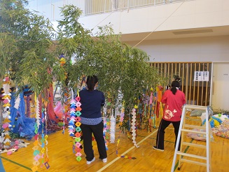 上柴西公民館の竹に飾り付けに行きました。作った頑張りをきれいに飾りました。明日は地域の皆さんが作った七夕様を見に行きましょう。楽しみですね。